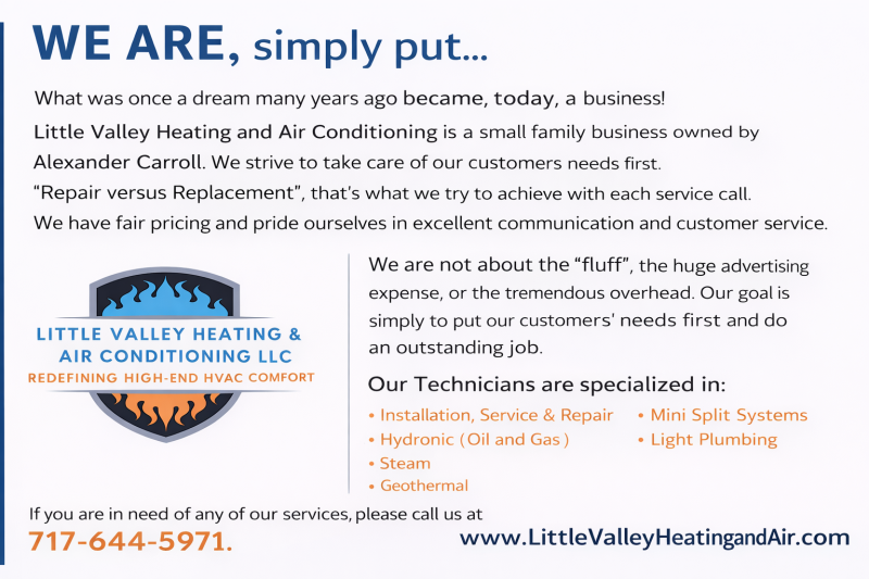 Little Valley Heating and Air Conditioning, LLC is always working ahead to get you ready for the change in season. Explore our new range of high-efficiency HVAC systems and specialized services tailored to meet the unique needs of Lebanon County, PA residents.